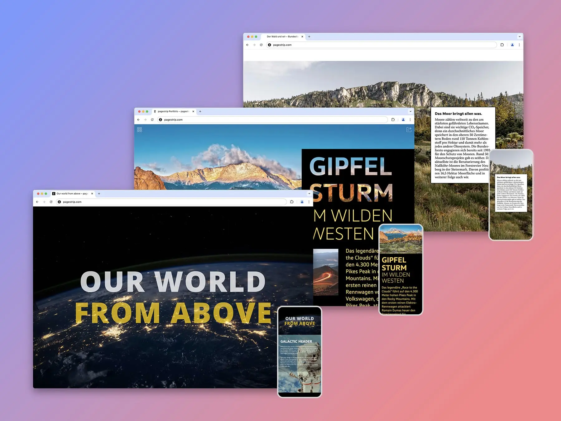 pagestrip is everything but a one-trick pony: Between our web editor, our web cockpit and our editor for macOS, there are countless ways to stage your brand in the unique way it demands.